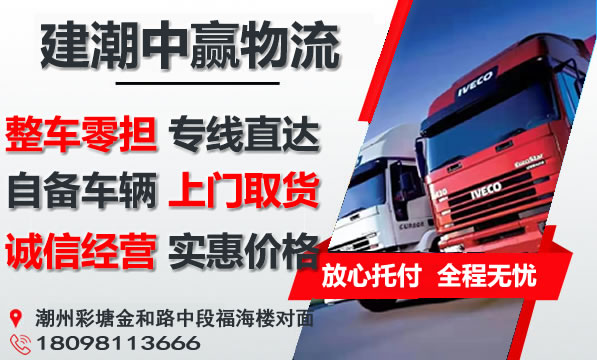 潮州到芜湖物流专线是建潮中赢物流主营重点物流线路之一,提供4.2-17.5米整车包车运输,零担专线,可上门取货,量大免费提送货;潮州到芜湖货运专线价格实惠,欢迎来电咨询。